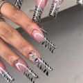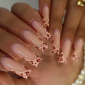 French Long Ballet False Nail Art with Strawberry Pearl